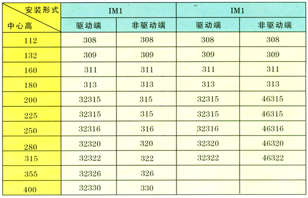 2.本系列電機(jī)所用軸承的型號(hào)