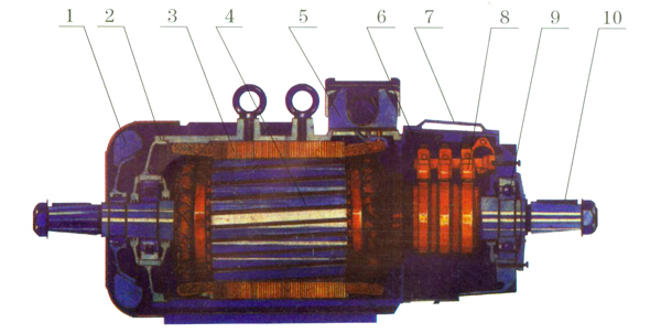 6.高端蓋 7.視察窗蓋 8.電刷裝置 9.軸承 10.平鍵