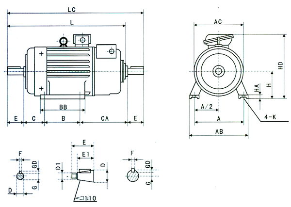 3.6驅(qū)動(dòng)類型:電機(jī)設(shè)計(jì)用于聯(lián)軸器或正齒輪驅(qū)動(dòng)。使用正齒輪傳動(dòng)時(shí),小齒輪的節(jié)距直徑不應(yīng)小于軸延伸部分的兩倍