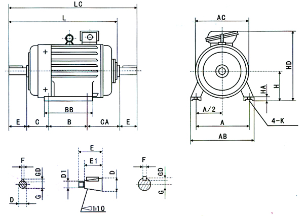3.6驅(qū)動(dòng)類型:電機(jī)設(shè)計(jì)用于聯(lián)軸器或正齒輪驅(qū)動(dòng)。使用正齒輪傳動(dòng)時(shí),小齒輪的節(jié)距直徑不應(yīng)小于軸延伸部分的兩倍