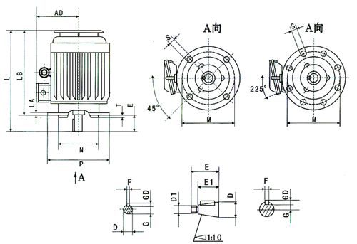 4.2YZIM112-250的總體安裝尺寸見(jiàn)表10