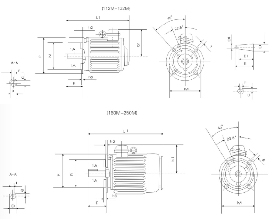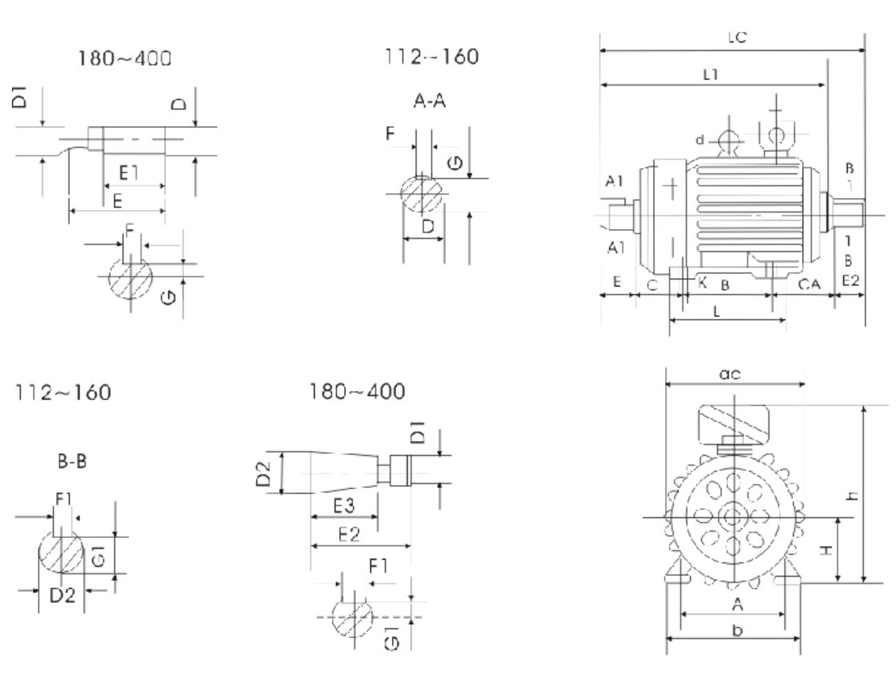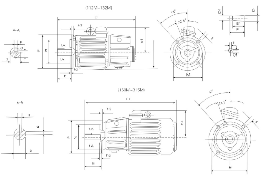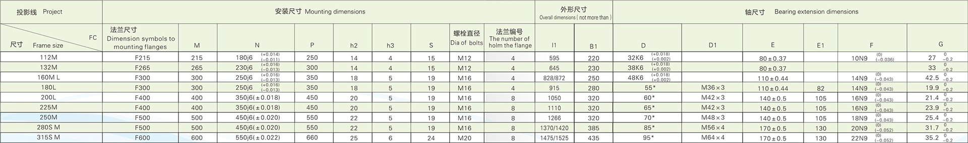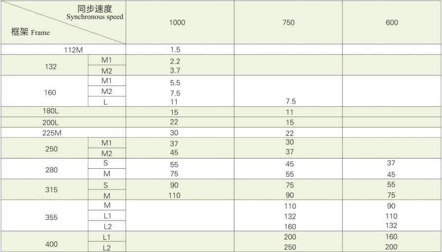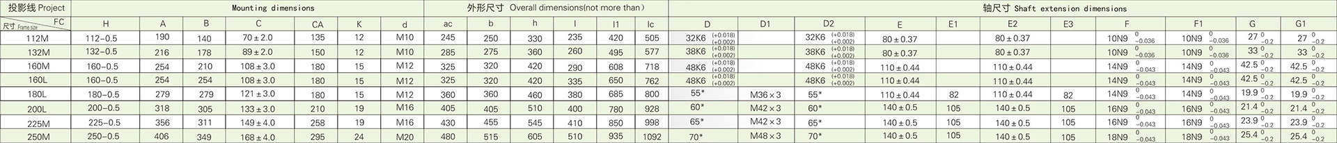 機(jī)座號 | 112M | 132M1 | 132M2 | 160M1 | 160M2 | 160L | 180L | 200L | 225M | 250M1 | 250M2 | 280S | 280M | ||
