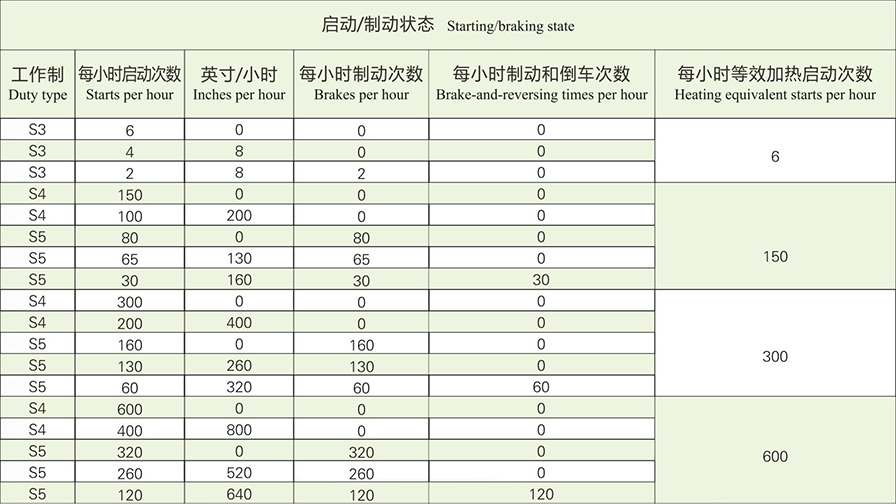 2.3在選擇電機(jī)時(shí),需要將不同類型的起動(dòng)和制動(dòng)狀態(tài)根據(jù)等效關(guān)系減少為等效起動(dòng)次數(shù)。然后將其用于確定電動(dòng)機(jī)的額定值。表4給出了一個(gè)典型的簡化示例。