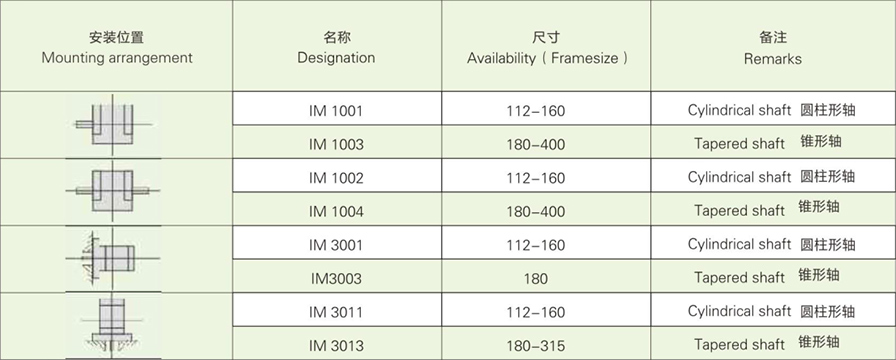 結(jié)構(gòu)及安裝形式 | 代號 | 制造范圍(機(jī)座號) |